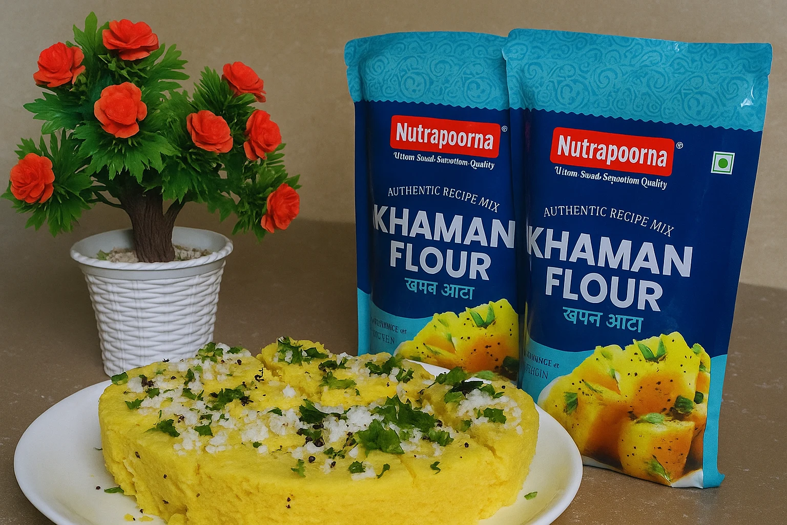 Enjoy the authentic taste of homemade Khaman with NutraPoorna’s ready-mix atta. Quick, easy, and irresistibly delicious—perfect for any time