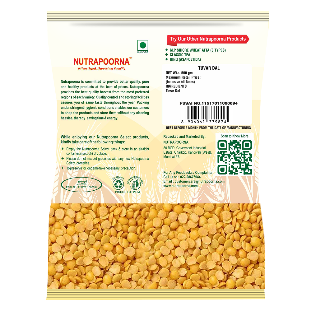 An Indian household favorite, Toor Dal from Nutrapoorna is rich in protein, potassium, and iron. Our unpolished dal preserves natural nutrients and is perfect for classic dishes like dal tadka and sambhar.