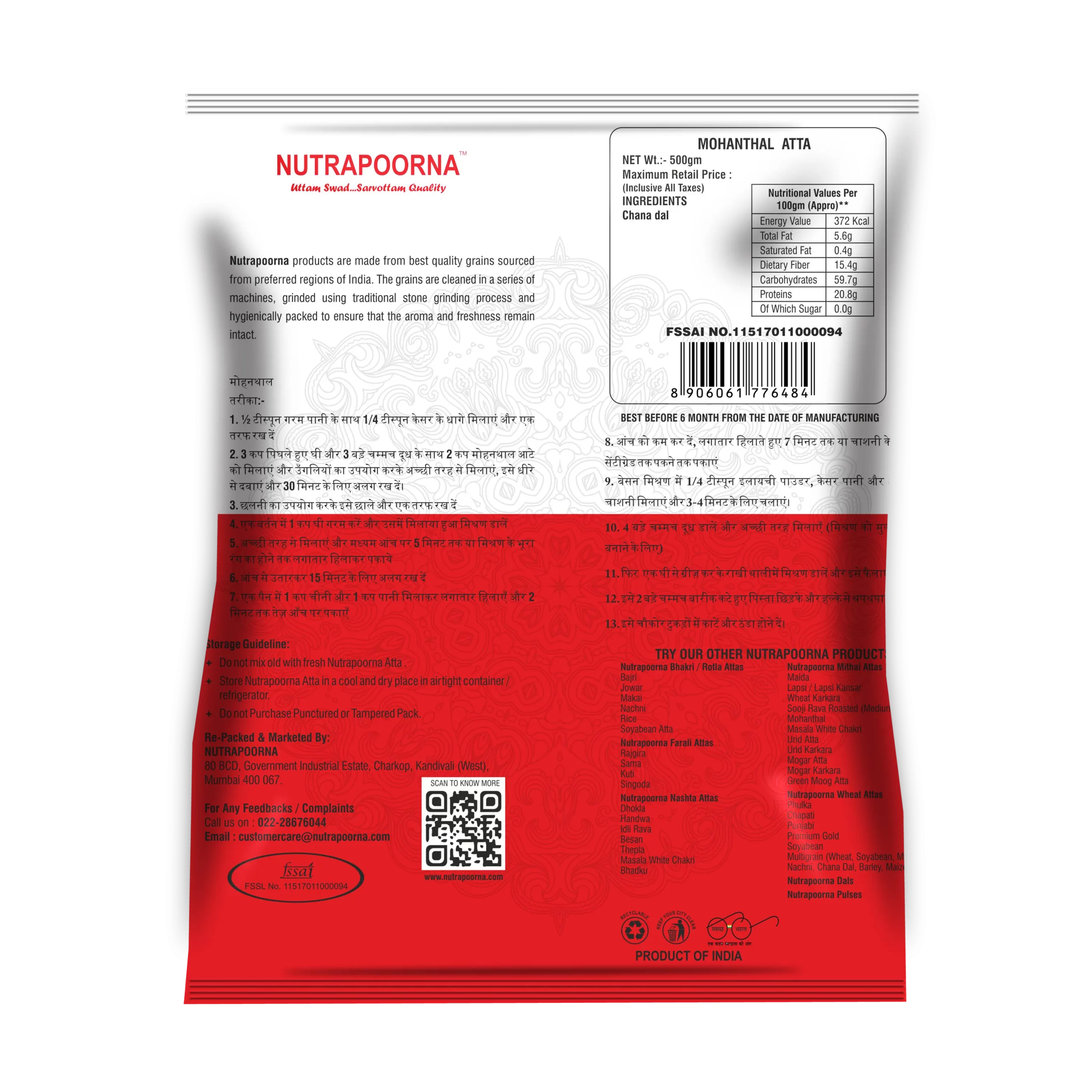 Specially roasted besan just for mohanthal, this flour gives that deep aroma, grainy texture, and golden color needed for this festive delicacy.