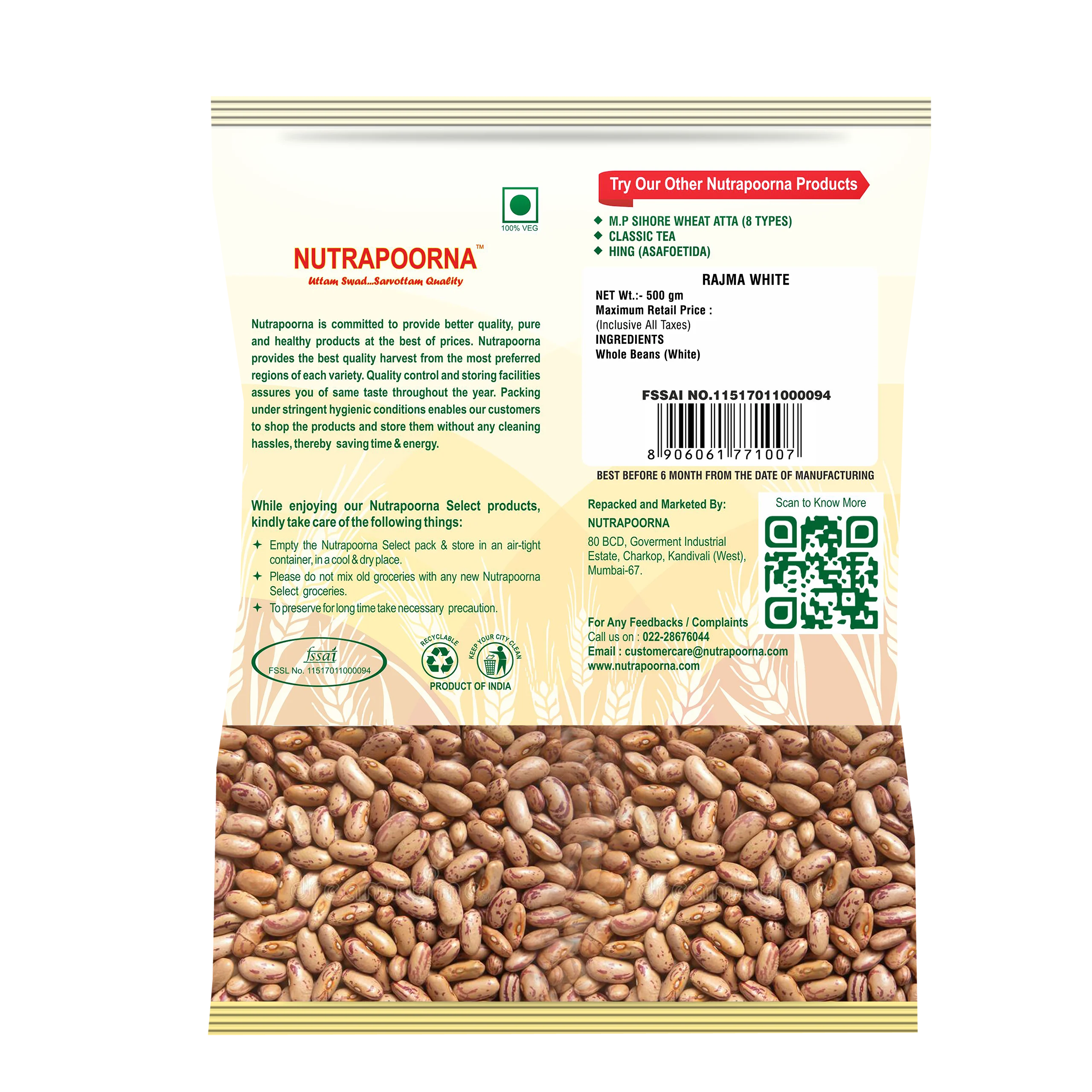 White rajma is a versatile bean with a mild flavor and smooth texture. Ideal for light gravies, Mediterranean recipes, and fusion dishes.