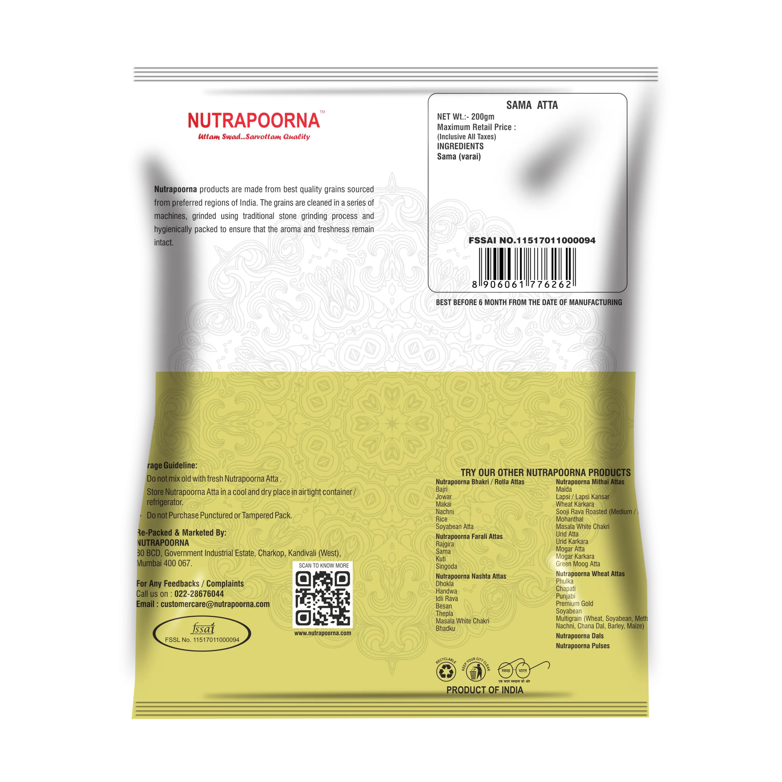 Also called Barnyard Millet, Sama is light and ideal for fasting. This flour makes excellent rotis, chillas and porridge — and is packed with fiber.