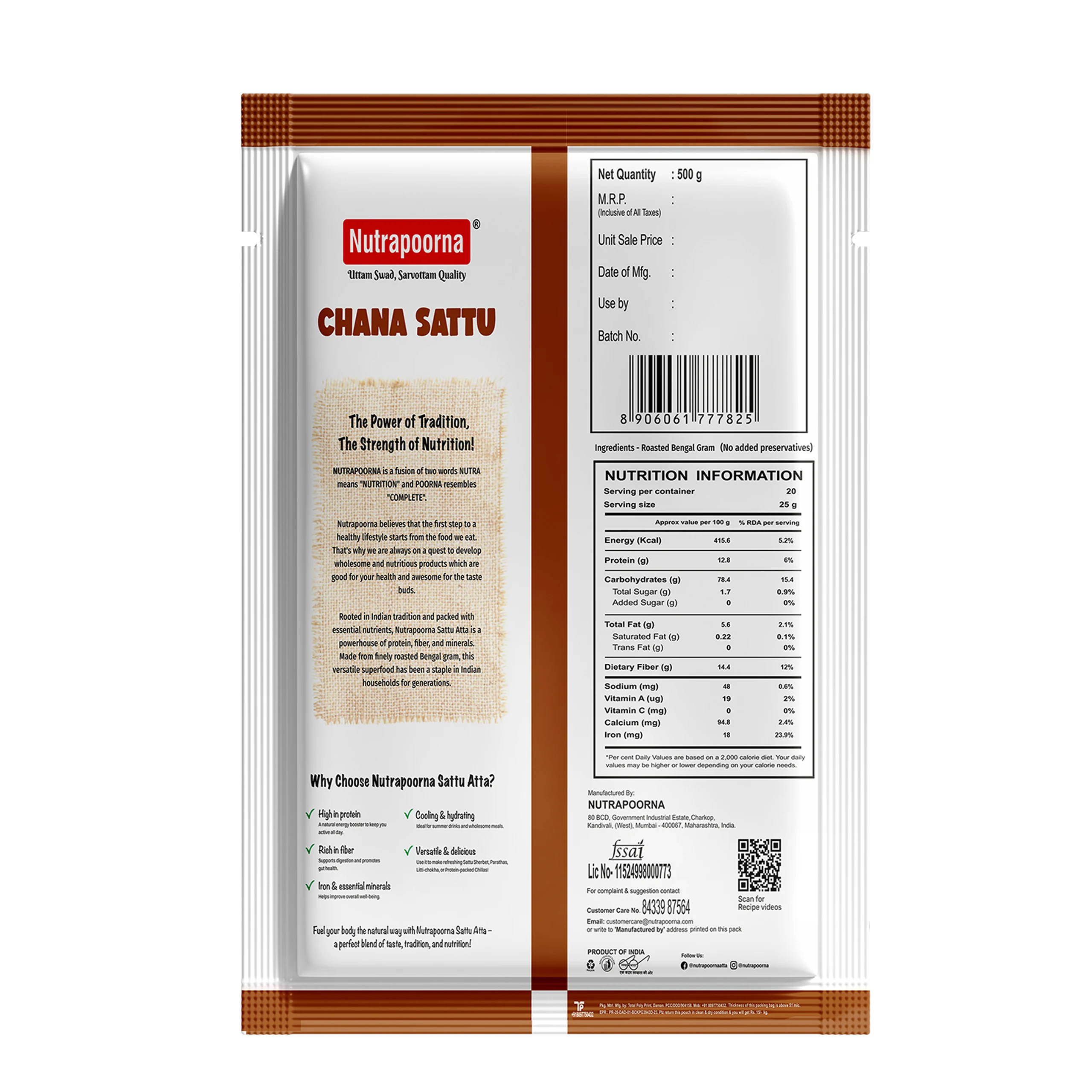 Made from roasted chana, our Sattu Atta is energizing, filling, and excellent for summer drinks or savory parathas.